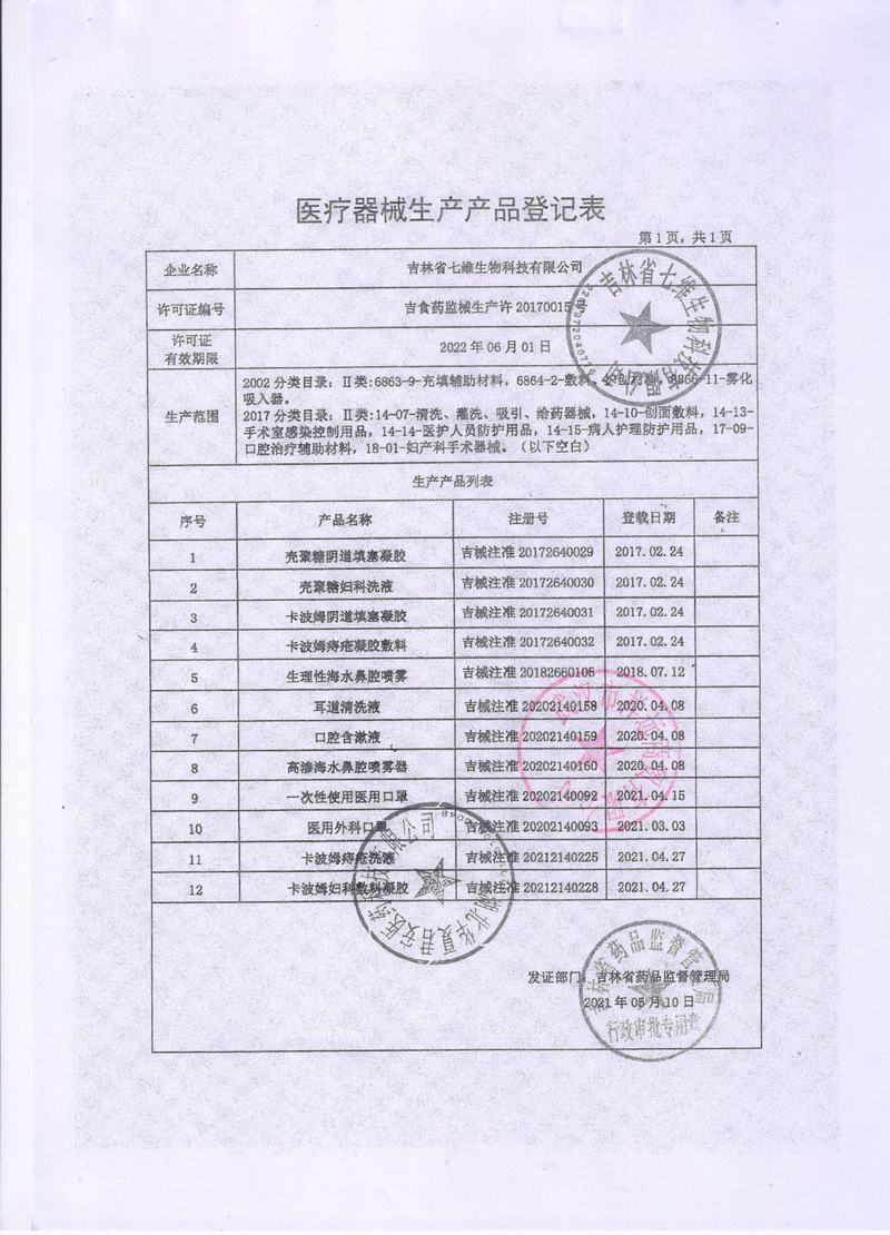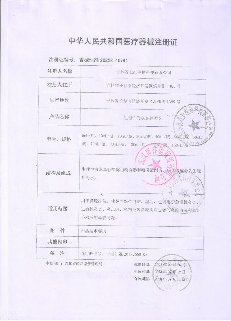 注册证号:吉械注准20182660105生产企业:吉林省七维生物科技有限公司适用范围:用于鼻腔冲洗,使鼻腔保持清洁、湿润,也可用于急慢性鼻炎、过敏性鼻炎、鼻息肉、鼻窦炎等鼻腔疾病患者的鼻腔清洗和鼻炎手术后的鼻腔清洗。