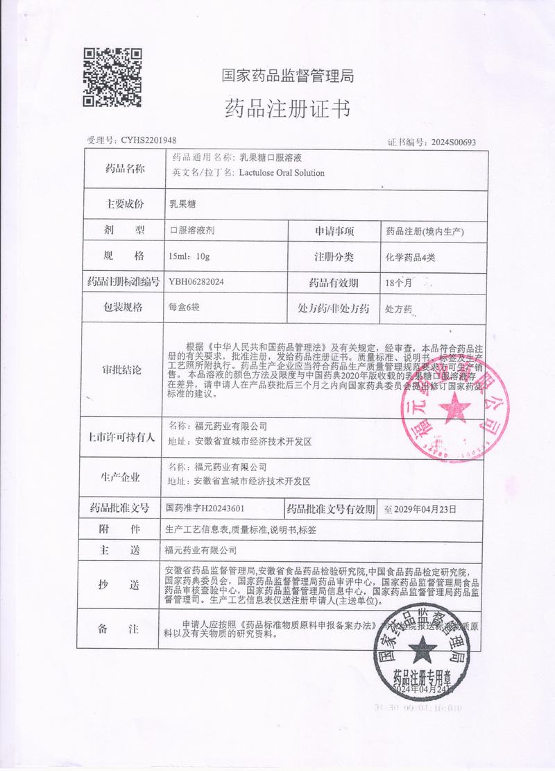 批准文号:国药准字H20243601